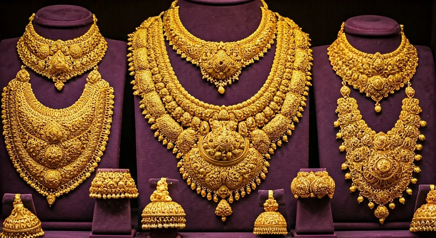 Experience exquisite gold jewellery crafted with traditional Indian artistry.